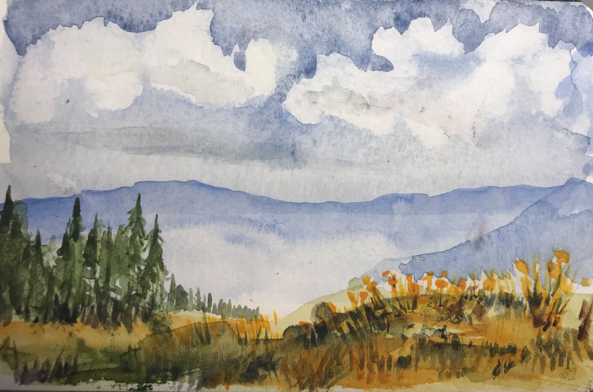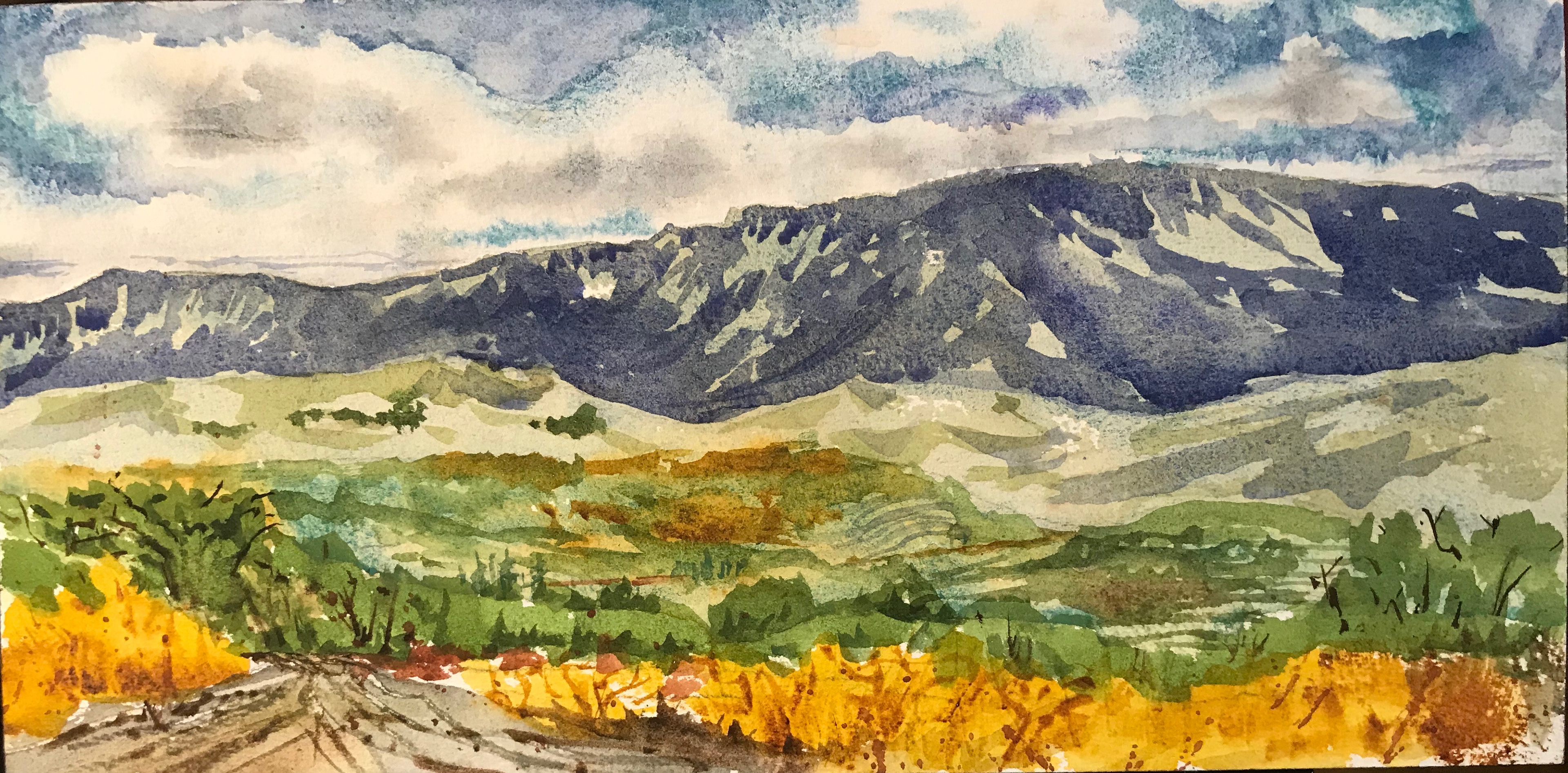 "Colorado View" - Watercolor on Paper - 3-1/2" x 5-1/2" (Moleskine Sketchbook) ©2019 - In the Collection of Milledge & Jessie Brodie
