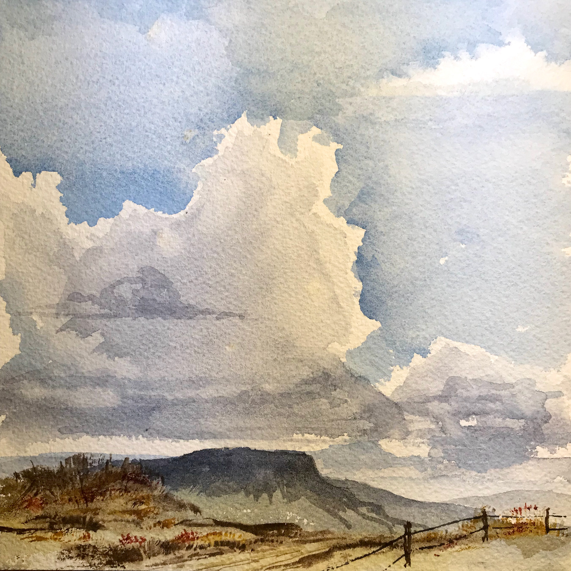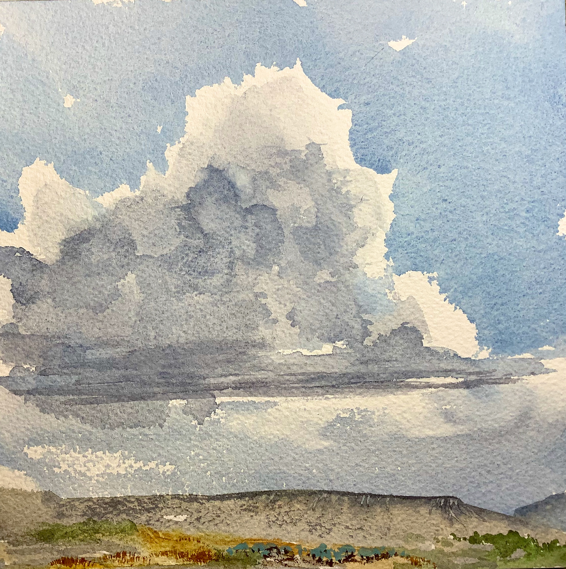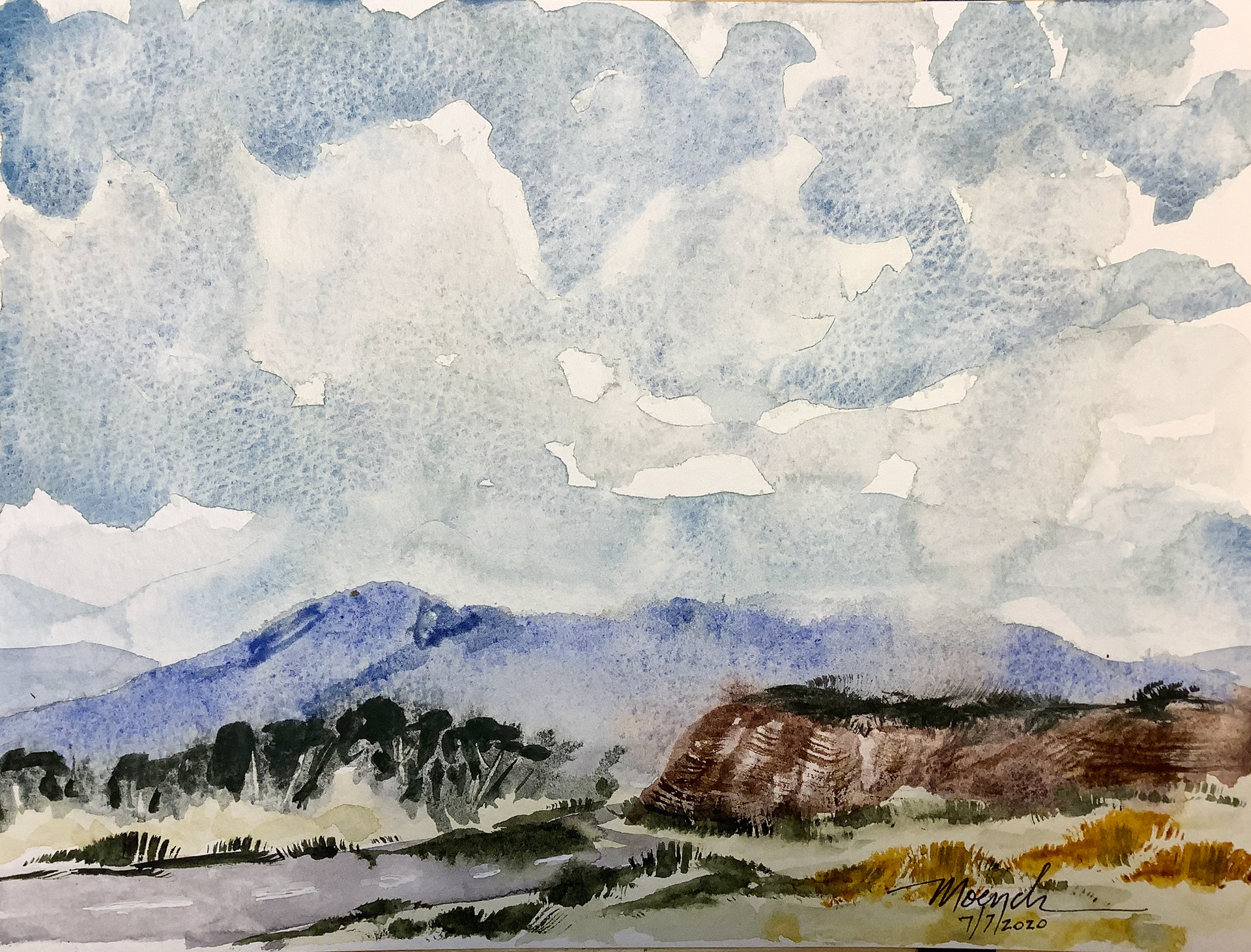 "Moon Over Longs" - Watercolor on Paper - 7.9" x 7.9" - ©2020