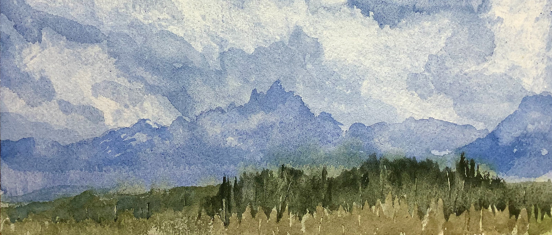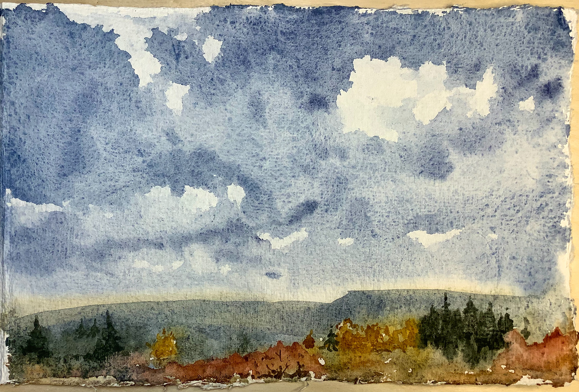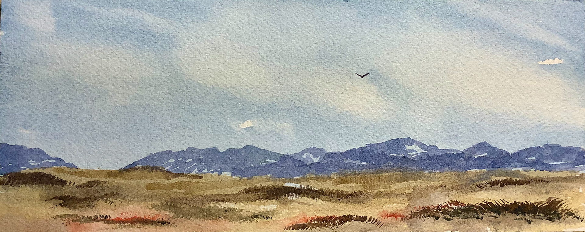 "Across the Lake" - Watercolor on Paper - 5" x 7" (shown with mat) - ©2020